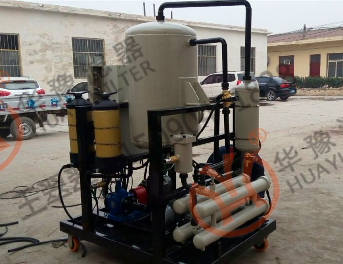 油中的游離水和溶解水通過(guò)降低潤(rùn)滑性、氧化和形成酸而使油液變質(zhì),不含水的油液即使暴露于高溫也不容易氧化和形成有機(jī)酸。有機(jī)酸化合物的純?cè)趯?dǎo)致腐蝕。水加快油液的熱降解而生成顆粒或含碳物質(zhì)。水的存在還引起油液聚合而形成大分子。聚合作用造成粘度改變,生成的聚合物質(zhì)堵塞節(jié)流孔,使系統(tǒng)元件磨損。高效真空濾油機(jī)能夠清除100%游離水和95%以上的溶解水。