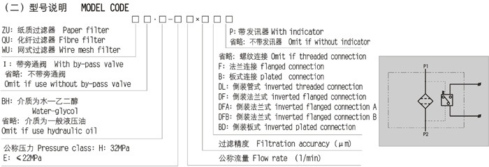 該過濾器設有壓差發訊裝置,當濾芯污染堵塞到進出油口壓差為0.35Mpa時,即發出開關信號,此時更換濾芯,以達到保護系統安全的目的。
