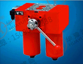 雙筒高壓過濾器SGF-H160*10由換向閥、壓力平衡閥、旁通閥、污染堵塞發訊器及兩只濾筒等組成,可以實現在系統不停機的情況下更換濾芯。該過濾器可安裝在控制元件或執行元件前的高壓管路上,用以保護控制元件及執行機構。特別適用自動控制系統中高精度伺服元件及柱塞元件的保護,可有效控制污染,延長元件使用壽命。工作時一只濾筒通油,另一只濾筒不通油備用。當工作濾筒的濾芯堵塞至壓差發訊器壓力指示值為0.5MPa時,發訊器發訊,此時應及時打開壓力平衡閥、轉動換向閥啟用備用濾筒(換向閥轉動到位后關閉壓力平衡閥)。再只需旋開螺塞放完被堵塞濾筒內的油液,再旋下筒體,就可更換已堵塞的濾芯。如因故未能及時切換換向閥啟用備用濾筒,導致壓差持續上升至旁通閥開啟壓力0.6MPa時,旁通閥會自動開啟,以避免由于壓力繼續上升,濾芯破裂造成再污染。但此時油液未經過濾對系統安全造成極大危害,應盡可能避免旁通閥被開啟。