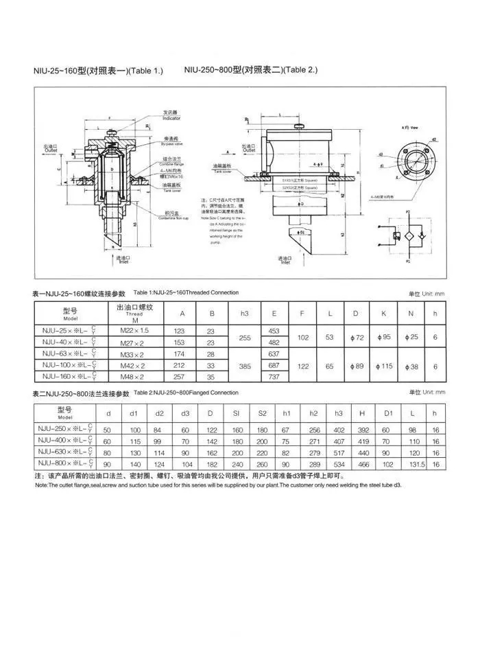 箱外內積式吸油過濾器NJU-63*80L-C/Y,具有連接方便、清洗或更換濾芯容易,易實現油箱封閉化,并設有組合法蘭、旁通閥、污染積物盅、堵塞發訊器等裝置。本產品經百家主機廠批量配套使用后證明,效果很好。